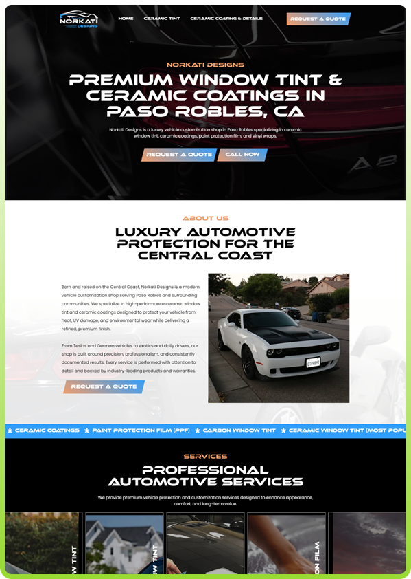 Norkati Designs approached Acetech Digital with the goal of improving their online presence through a complete website redesign. Their primary objective was to create a modern, user-friendly experience that better reflects their premium automotive services while making it easier for potential customers to explore offerings and request a quote. The existing website was not effectively supporting these goals, limiting its overall impact.