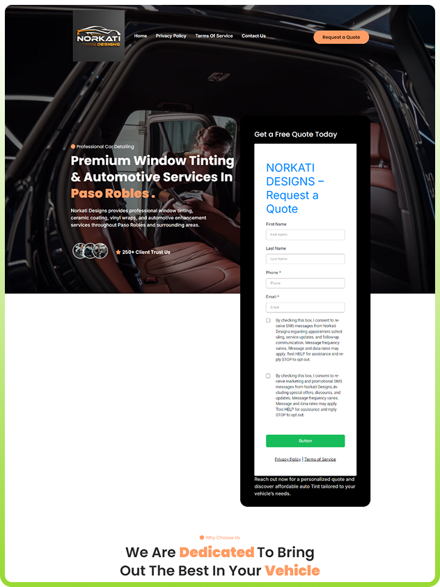 The goal of this project was to create a modern, user-friendly website that reflects the brand’s premium positioning while making it easier for potential customers to explore services and request a quote. As part of our automotive web design, we focused on improving usability, visual presentation, and overall user experience.
